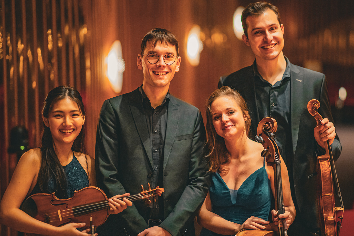 Alle vier Ensembles sind Stipendiaten des Deutschen Musikwettbewerbs. Sie wurden 2024 als Finalisten in die Konzertförderung 2025/26 aufgenommen. Unser besonderer Dank gilt dem Deutschen Musikrat, mit dessen Unterstützung wir die begonnene Kooperation festigen und ausbauen können. Es beweist, dass uns als Kammermusik-Gemeinde Hannover die Förderung junger Solisten* innen und Ensembles besonders am Herzen liegt.